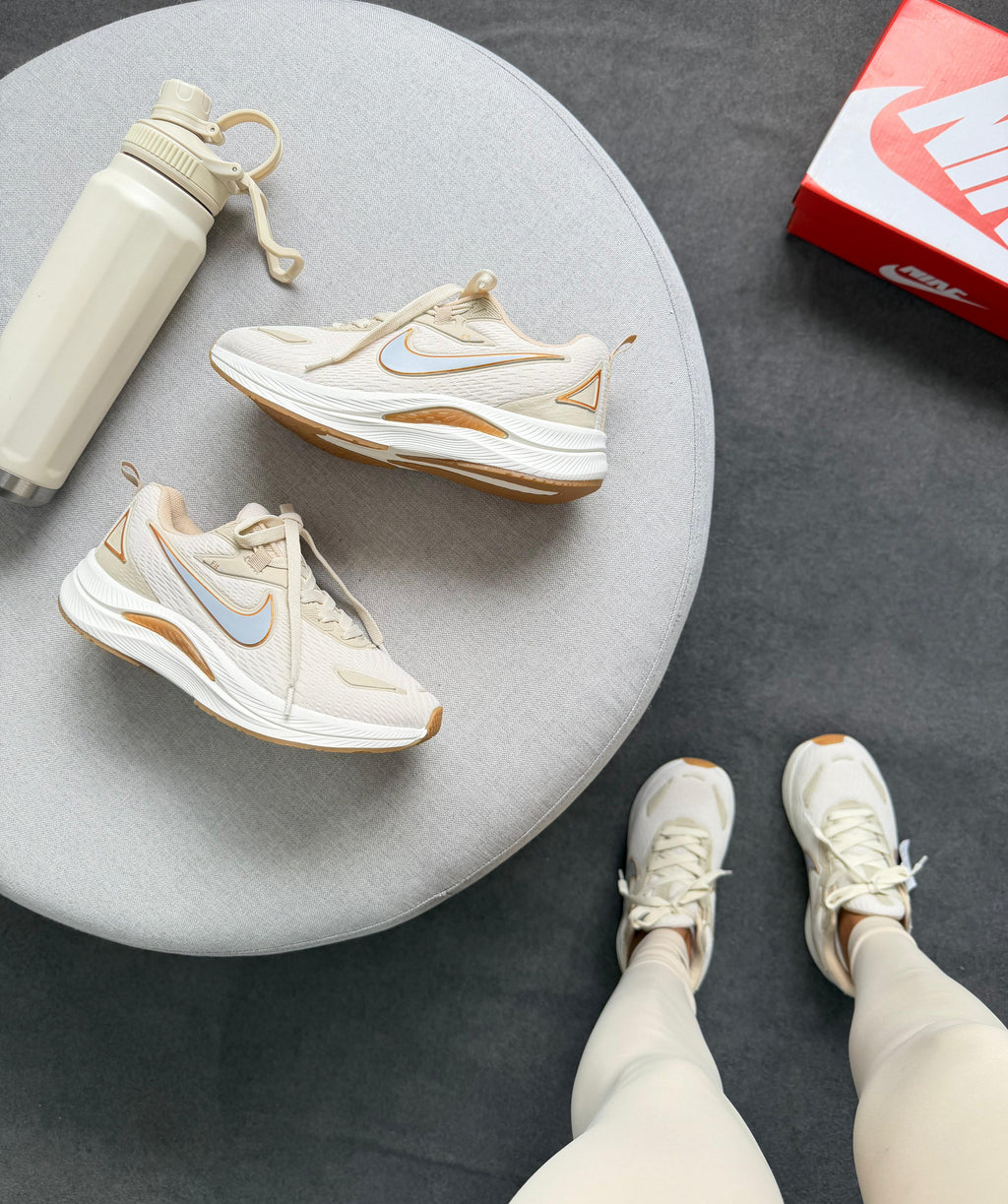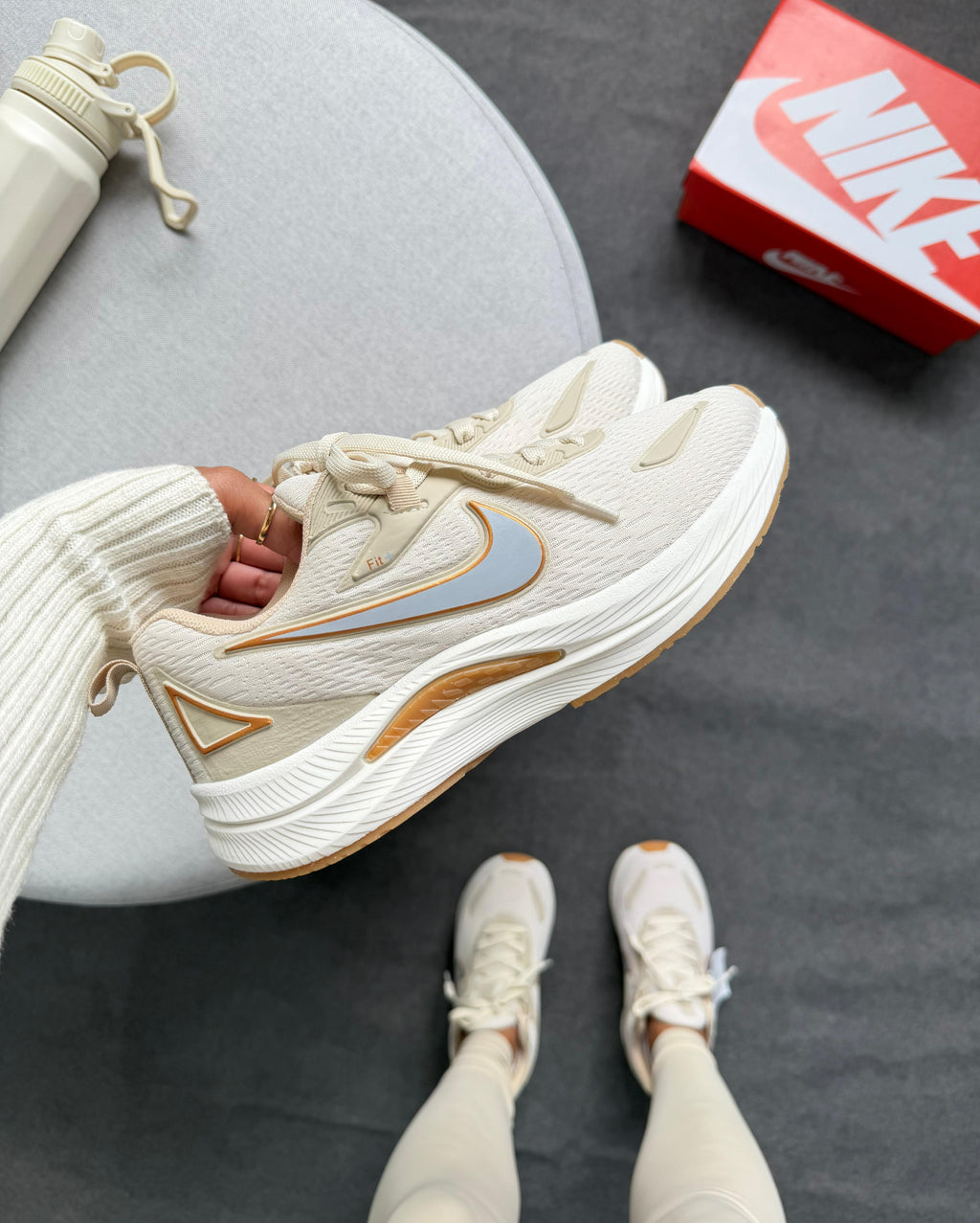 A combinação bege com detalhes em branco e dourado traz um visual elegante, moderno e fácil de combinar com qualquer look.