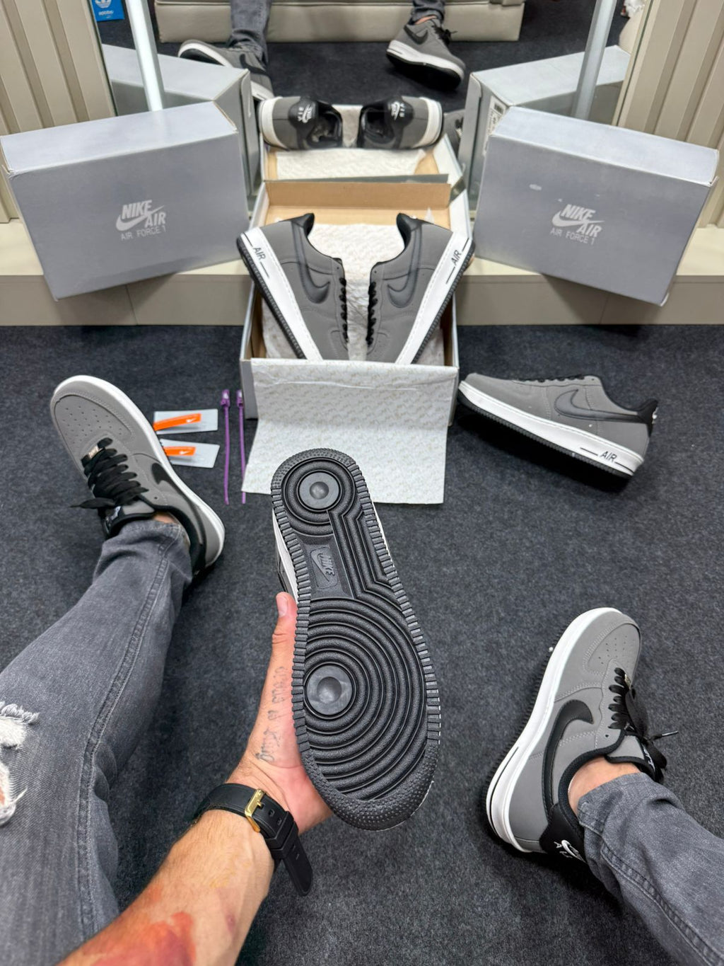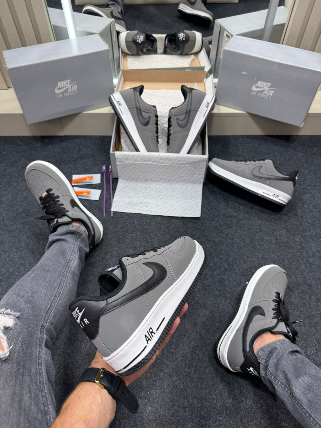 O clássico que nunca sai de moda. O Nike Air Force 1 Low combina estilo urbano com conforto premium, trazendo uma pegada moderna na cor cinza com detalhes em preto .